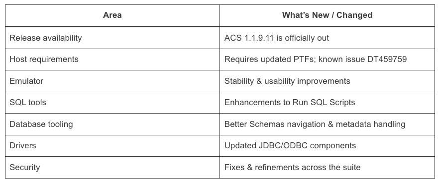 🛠️ IBM i ACS 1.1.9.11 delivers quiet stability