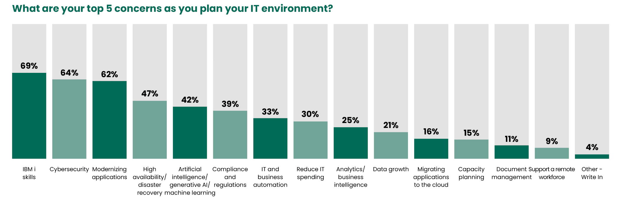 Clients today aren’t just modernizing their infrastructure and applications. They’re positioning themselves to take advantage of new capabilities as technology evolves. And the data backs it up: 70 percent of IBM i users plan to upgrade hardware or software this year, and 95 percent continue to see greater ROI on IBM i than on other platforms.