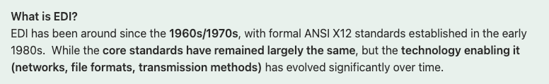 - EDI: 🔄 Modernizing EDI infrastructure transforms cost centers into competitive advantages for forward-thinking organizations.